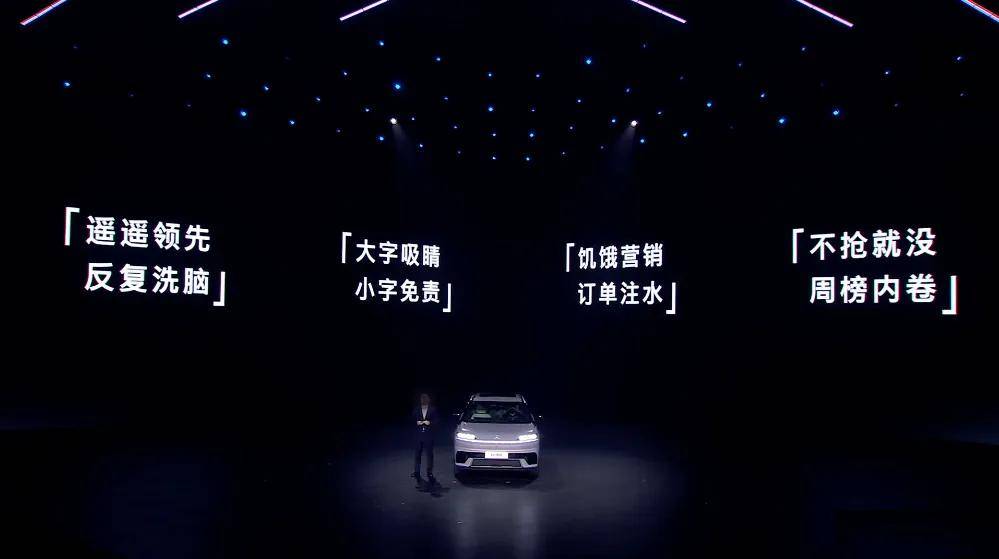 有的车企靠遥遥领先反复洗脑,有的玩大字吸睛、小字免责的文字游戏,还有的拿销量饥饿营销加订单注水、制造不抢就没的焦虑。或许有些友商陷在了销量周榜内卷里,反而丢了最核心的本质。”
